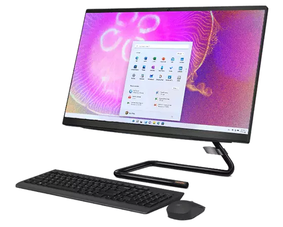 Vue avant en angle du tout-en-un IdeaCentre 3i (24) avec clavier