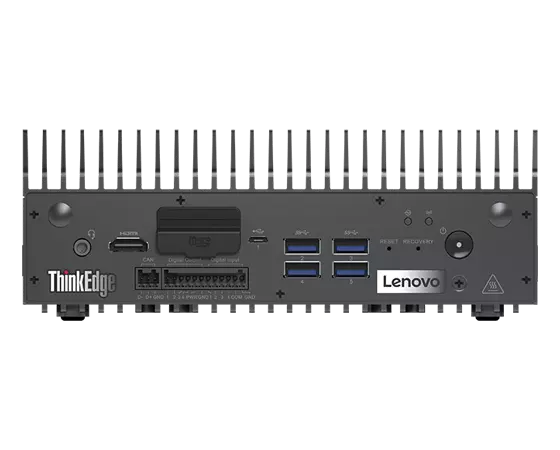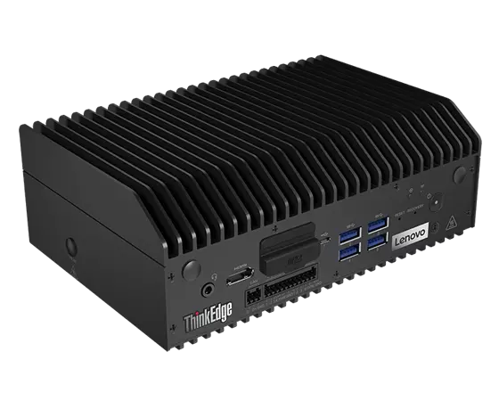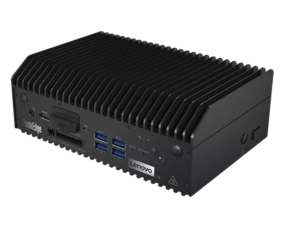 Vue avant du client Lenovo ThinkEdge SE70 Edge en angle de gauche