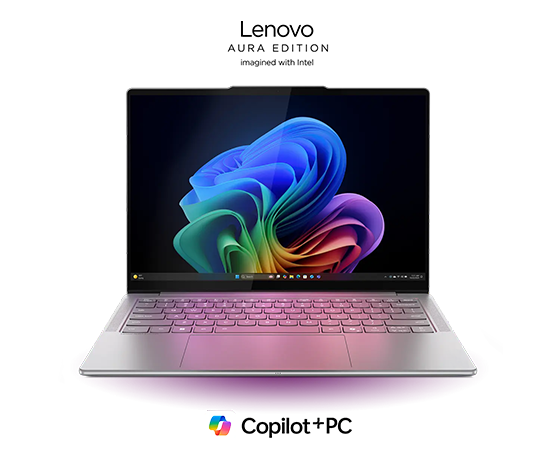 Vue avant du Lenovo Slim 7i Édition Aura avec Windows 11 à l’avant.