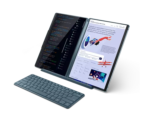 Yoga Book 9i Gen 8 (13 » Intel) face avant gauche avec clavier Bluetooth®